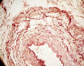 Abstract: The paper shows the main morphological changes of the blood vessels of the lungs in COPD patients in the acute phase. It is established that the most evident changes occur in all the membranes of the arteries of the level of segmental and sub-segmental bronchi in the form of media hyperplasia, fibrinoid necrosis areas, dystrophic phenomena of vascular smooth muscle cell, structural transformation of internal and external elastic membranes, their hyperplastic, elastofibrosis, collapse and fragmentation, accretion of unsulfured glycosaminoglycans longwise fibers. Morphometrics show that media is 3-4 times thicker than intima and the lumen of the most arteries is narrowed down to 25-30% compared to the outer diameter. Moreover, at exacerbation of chronic obstructive pulmonary disease in III-IV stage there are observed lymphohistiocytic reaction longwise the arteries. Conducted comprehensive morphological studies indicate that not only the bronchial tree, but also bronchial arteries were involved in the pathological process, which leads to disorders of the different generation bronchi blood supply and disorders of normal functioning of the bronchi.